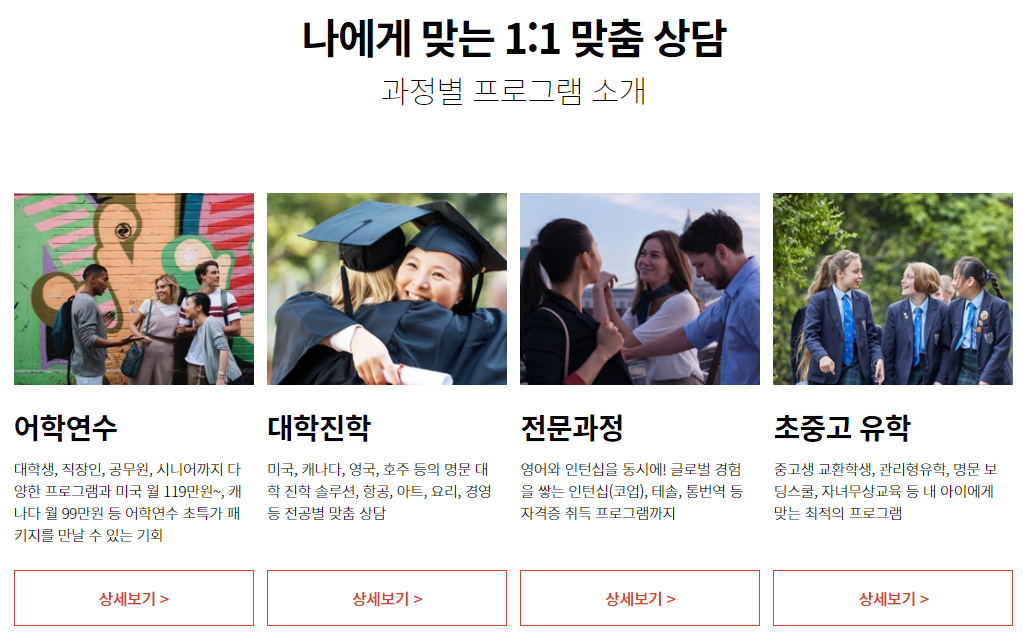 초중고 유학까지 과정별 프로그램이 있어서
