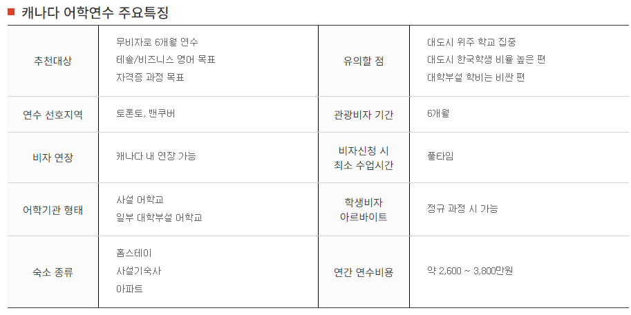다음은 캐나다 어학연수도 인기가 많아요.