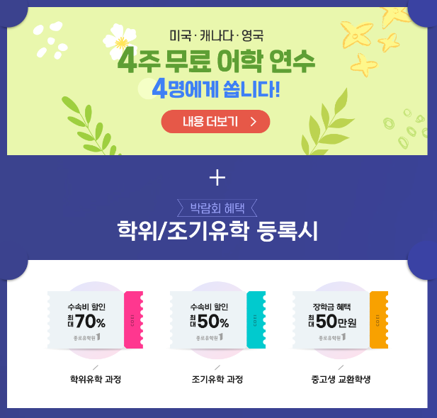 이날 오시면 어학연수 / 대학진학 / 전문과정 /