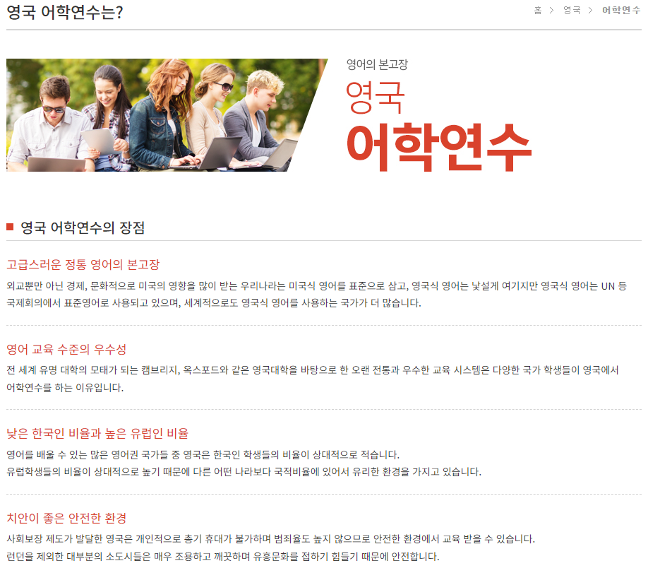 본고장인 영국 어학연수인데요.