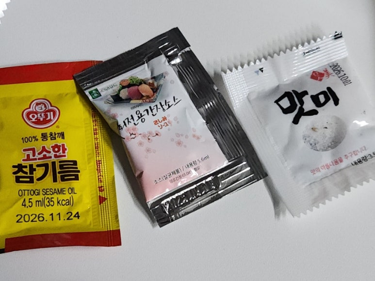 참기름, 간장소스, 맛미, 와사비 다 있구요.