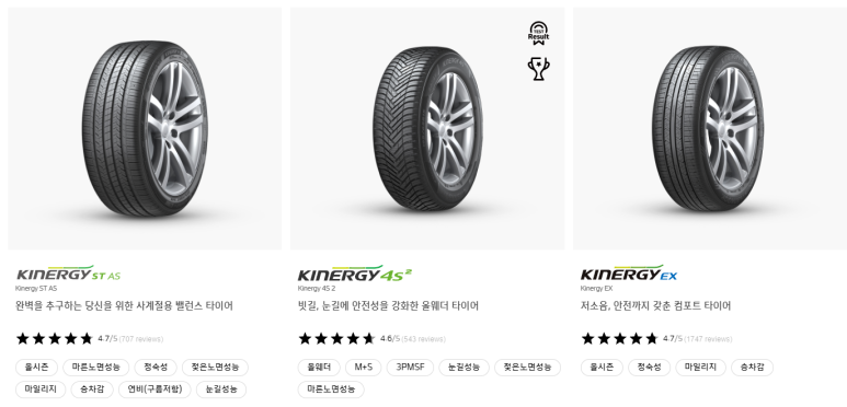 그래서 대안으로 한국타이어 홈페이지에 왔어요.