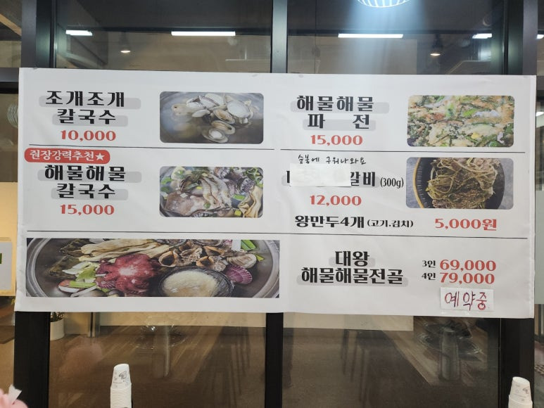 조개조개 칼국수 1만원이구요.