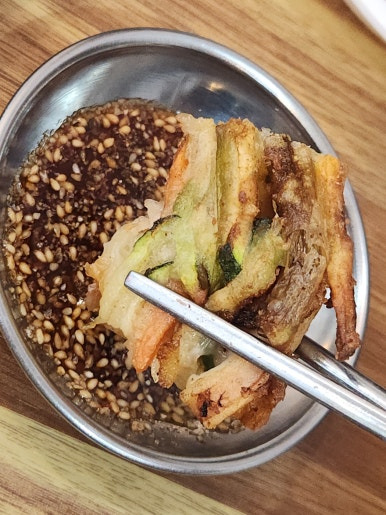 바삭바삭하고 오징어가 들어가 있어서
