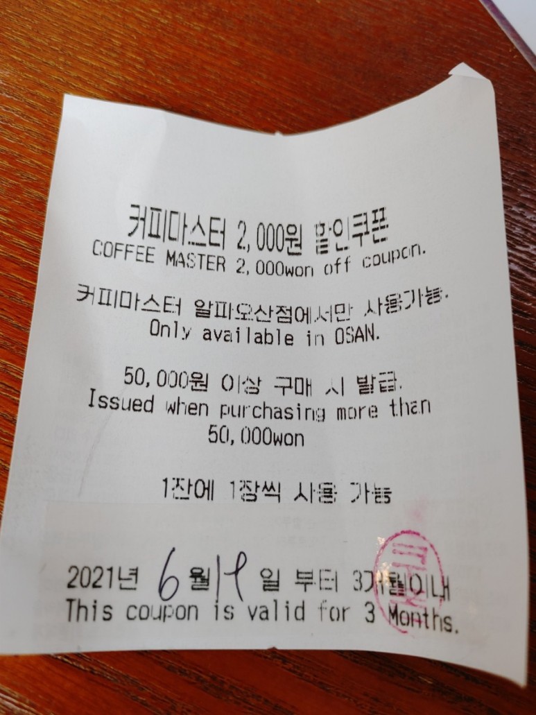 5만원 이상 구입했더니 커피 할인쿠폰을