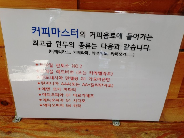 커피에서 나는 신맛에 대한 안내가 붙여져있었어요.