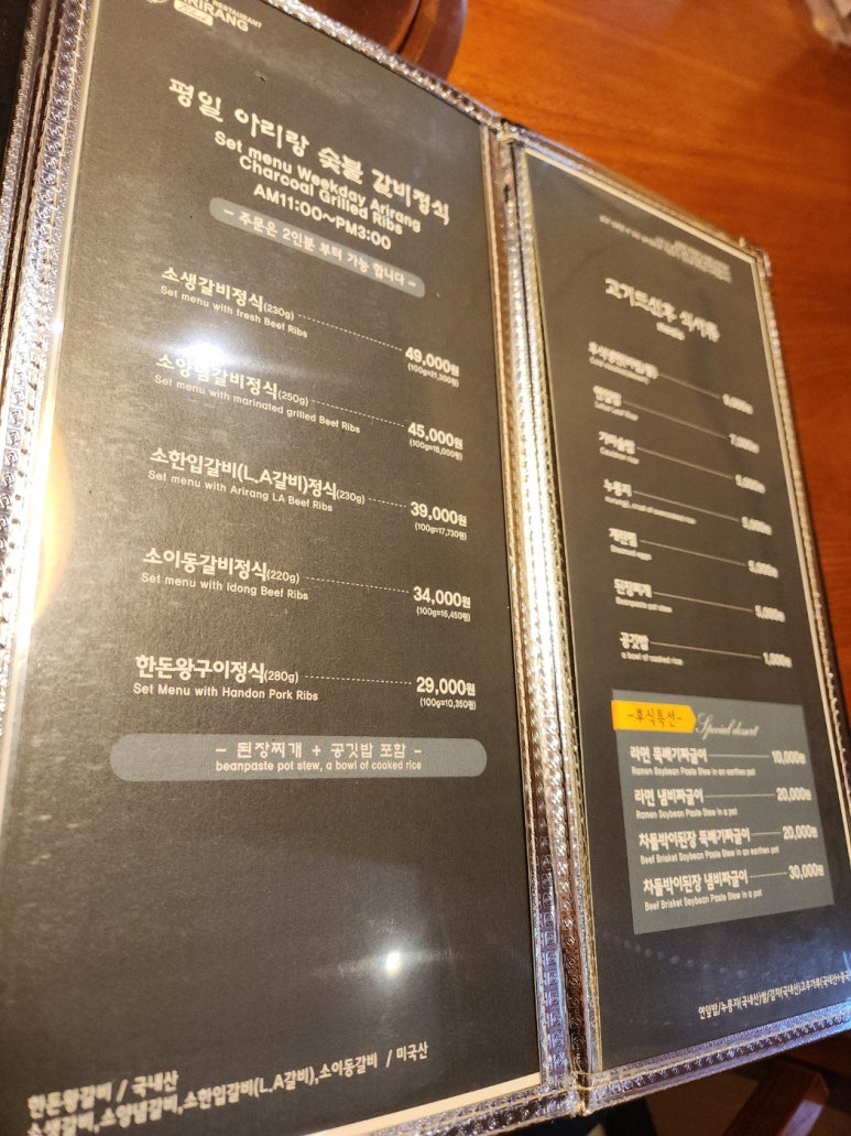 동탄 한식당 아리랑블랙입니다.