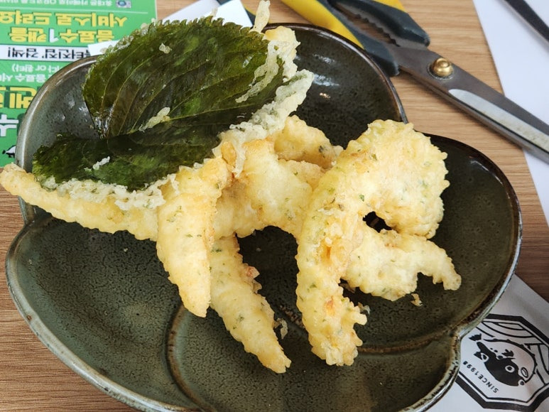 여기에 깻잎 튀김도 함께 나오더라구요.