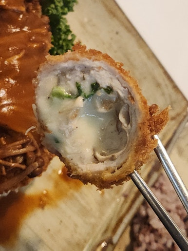고소한 치즈가 돈까스 위에 올려져있는게 아니라
