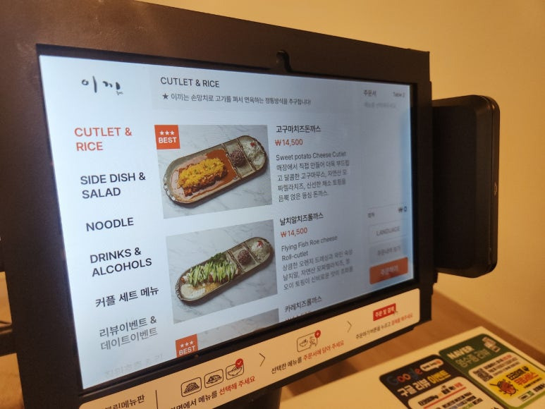태블릿으로 주문과 계산까지 할 수 있구요.
