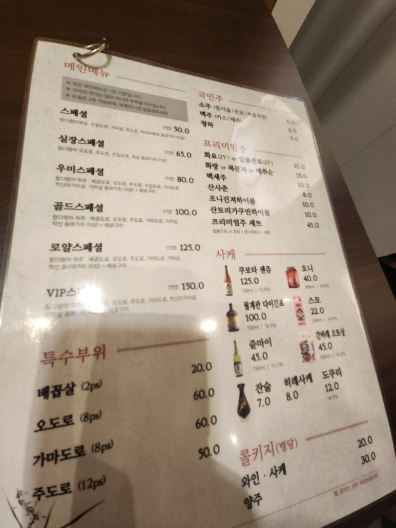 가장 비싼 VIP스페셜(15만원)까지 있구요.