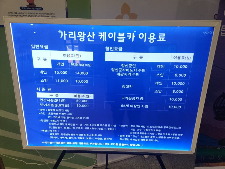 가리왕산 케이블카 요금은 15000원