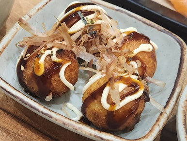 타코야끼는 겉바속촉으로 맛있었어요.