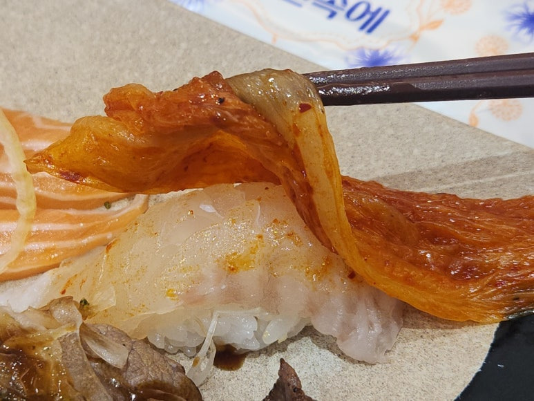 서비스로 백김치초밥을 주는 경우는 봤는데