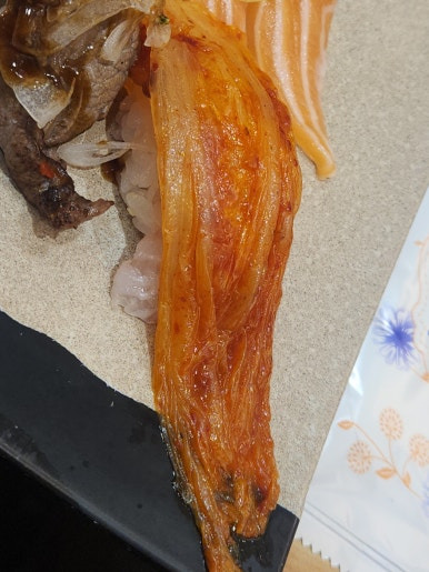 김치를 올려보니 밑에 광어가 있더라구요.