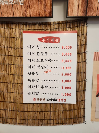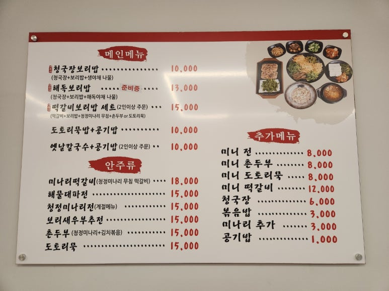 메인메뉴인 청국장보리밥이 1만원