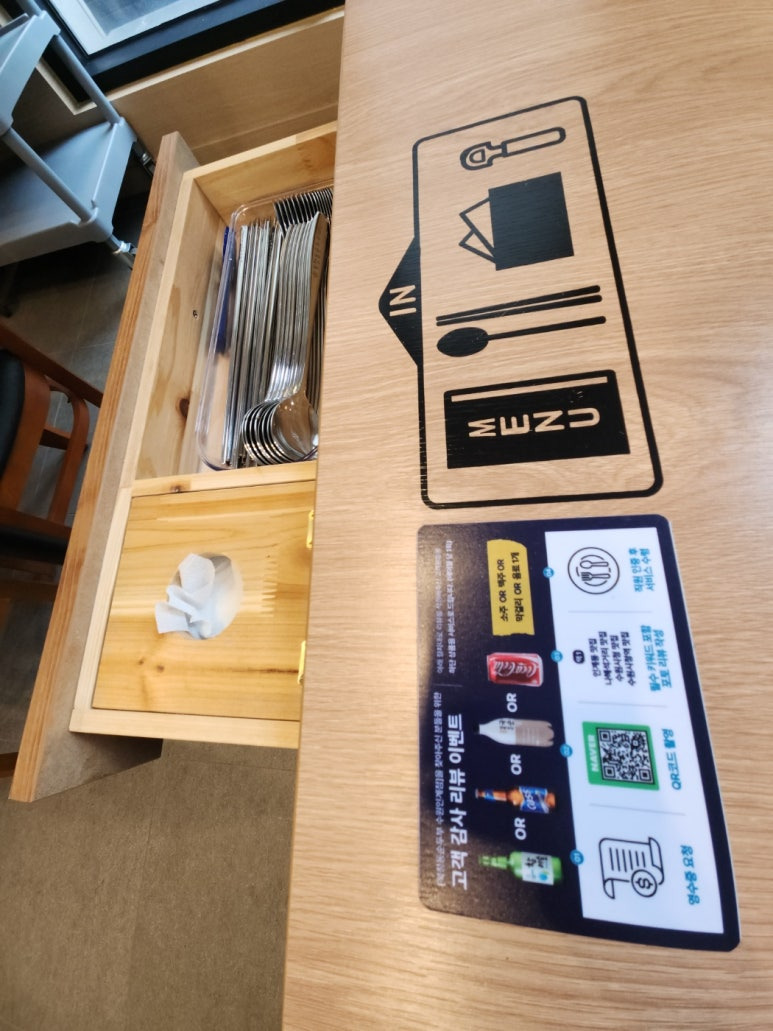 식기류는 테이블 옆에 숨겨있구요.