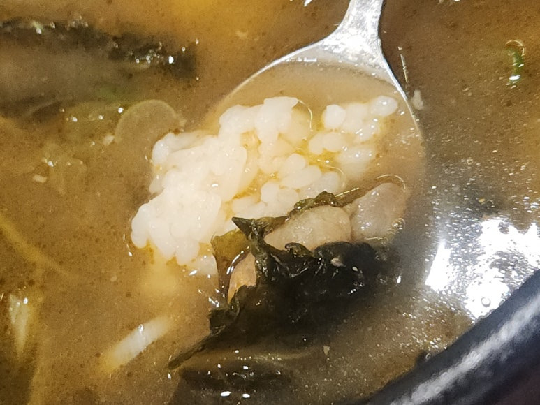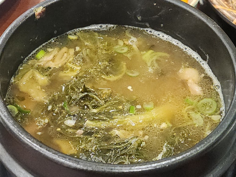 이렇게 맑은 국물 느낌의 뼈해장국이에요.