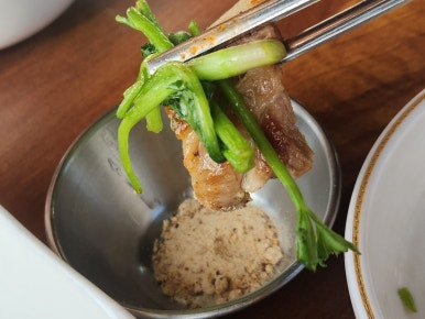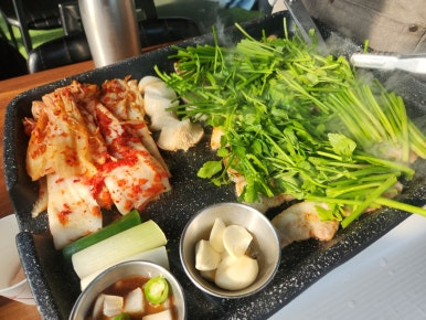 미나리 삼겹살을 맛보기로 했어요.