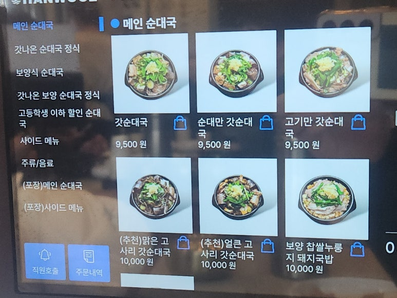 가장 기본 메뉴인 갓순대국은 9500원이구요.