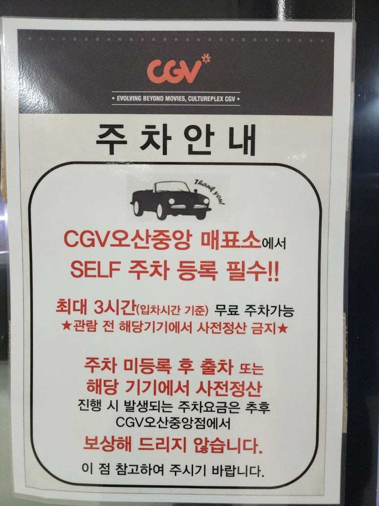 급히 예매를 해서 CGV오산중앙으로 갔어요.