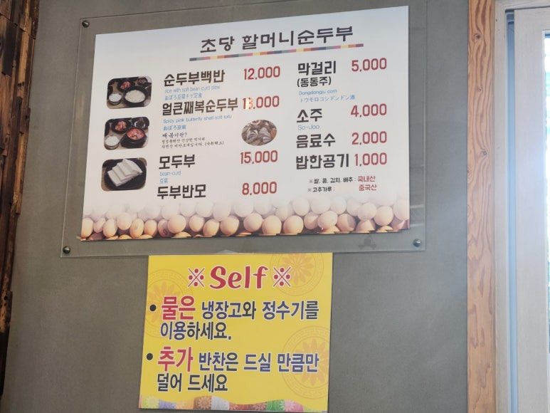 저희는 순두부백반으로 2인분 주문했어요.