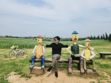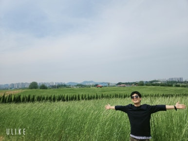 푸른 청보리밭을 배경으로 사진 찰칵!