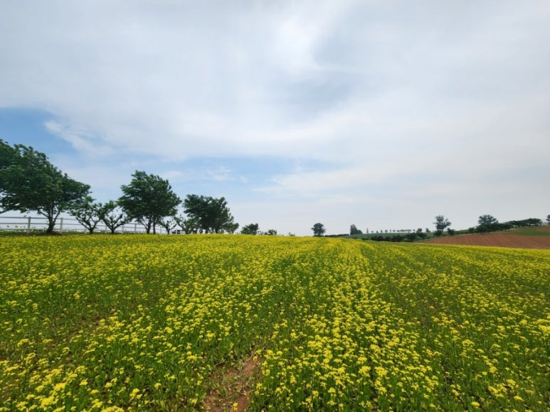 유채꽃이 평년에 비해서 만개하지 않았어요.