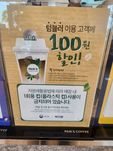 텀블러 이용 고객은 추가 100원 할인도 있어요.