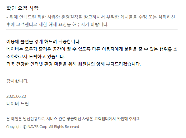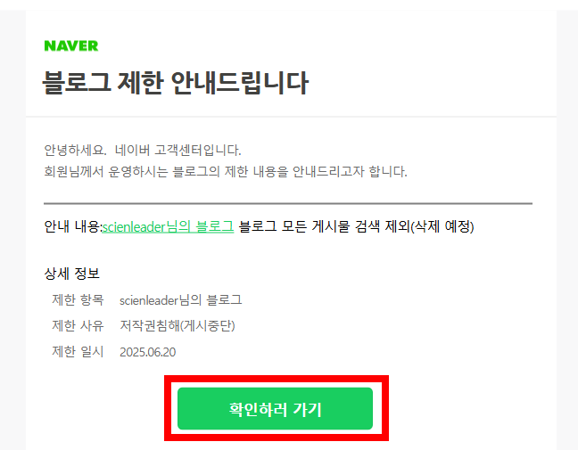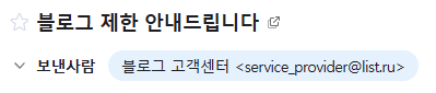 어느 날 갑자기 '블로그 제한 안내드립니다'라는 제목의 메일을 받는다면 어떠실까요?