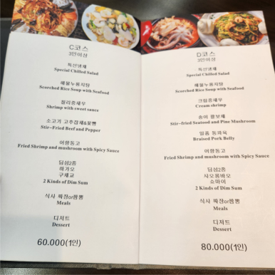 메뉴판을 펼치니 다채로운 코스 요리부터 눈에 들어와 '역시 클래스가 다르구나' 싶었습니다.
