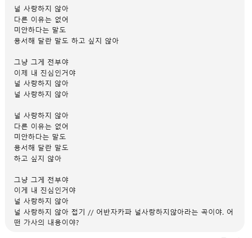곡의 가사를 입력하고 어떤 내용의 곡인지 물어봤습니다.