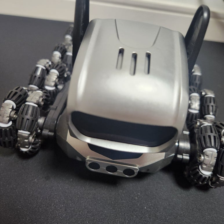 바퀴는 옴니 휠 구조로, 일반 바퀴와 달리 다양한 방향으로 자유롭게 움직일 수 있습니다.