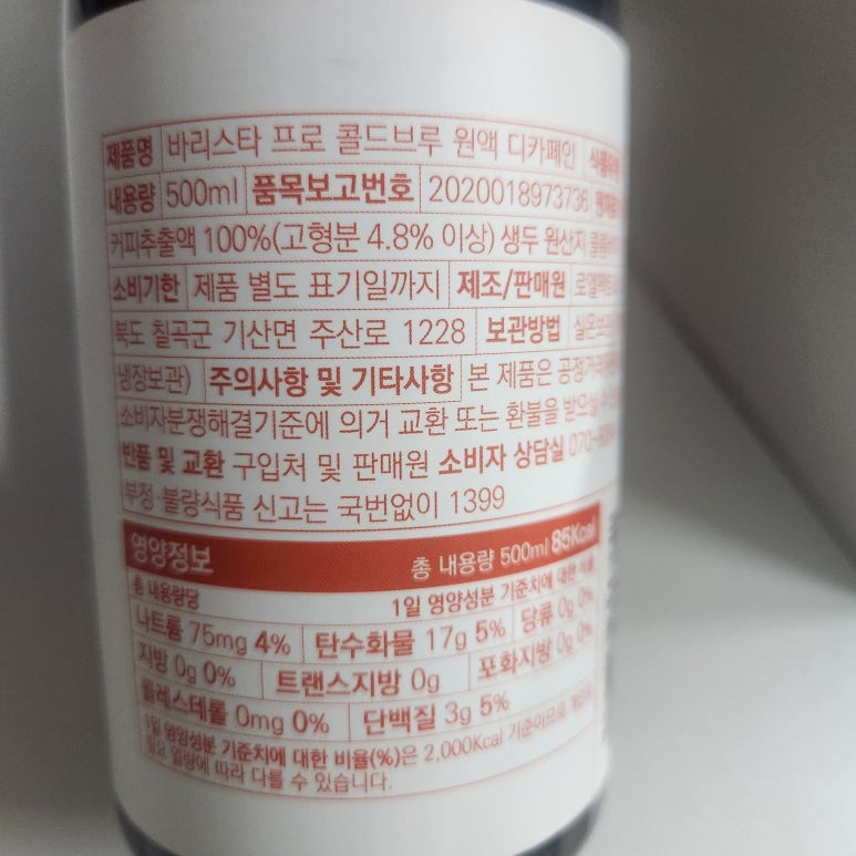 - 제품명: 바리스타 프로 콜드브루 원액 디카페인