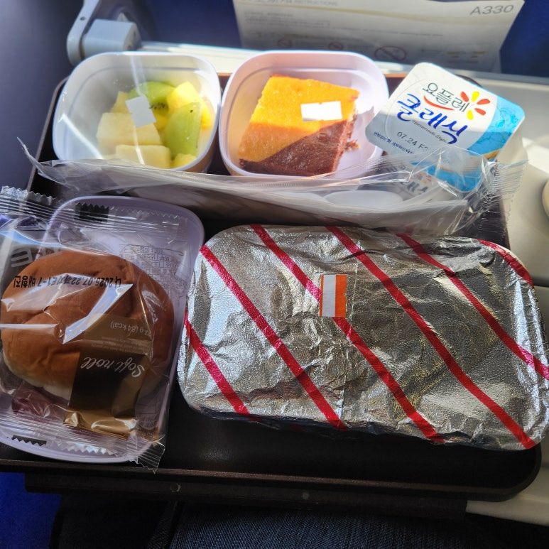 - 한국에서 출발할 때 제공된 기내식은 요거트까지 곁들여져 비교적 괜찮았어요.