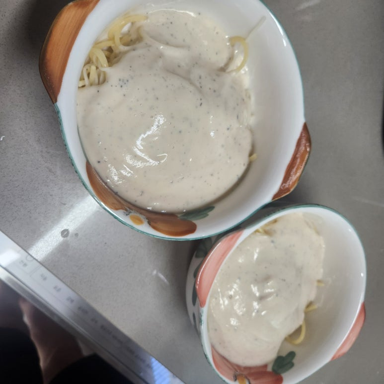 - 흑임자 콩물을 부었는데 농도가 너무 걸쭉해서 깜짝 놀랐어요. 심지어 물을 조금 섞어야 할 정도였답니다.