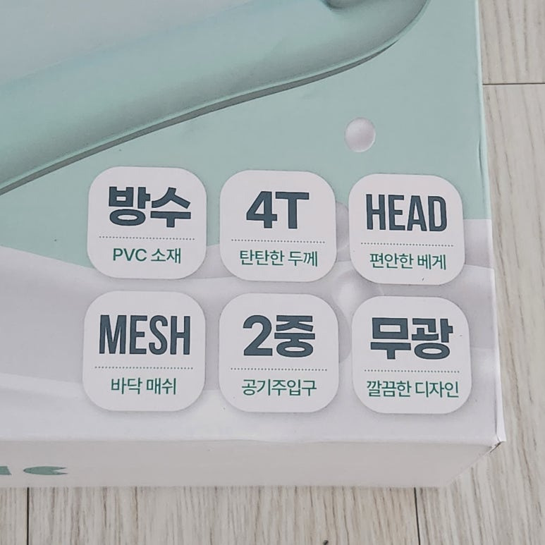 - 소재 : 베개 부위 (PVC), 바닥 (메쉬 소재)