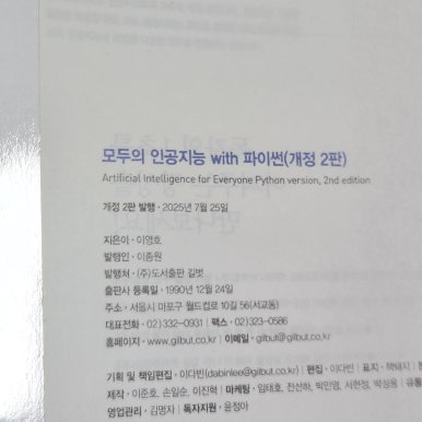 바로 길벗 출판사의 인기 시리즈 중 하나인 모두의 인공지능 WITH 파이썬 개정 2판』입니다.😊