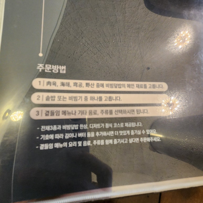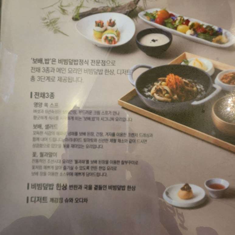- 코스 구성: 전채 3종 → 메인 비빔덮밥 한상 → 디저트