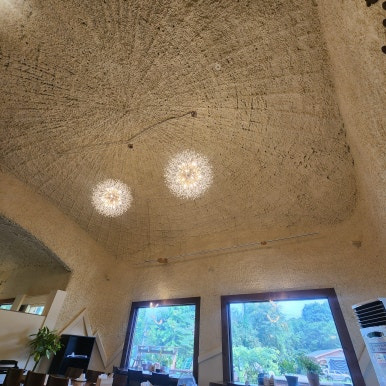 층고가 높고 조명이 따뜻해서 가슴이 탁 트여요.