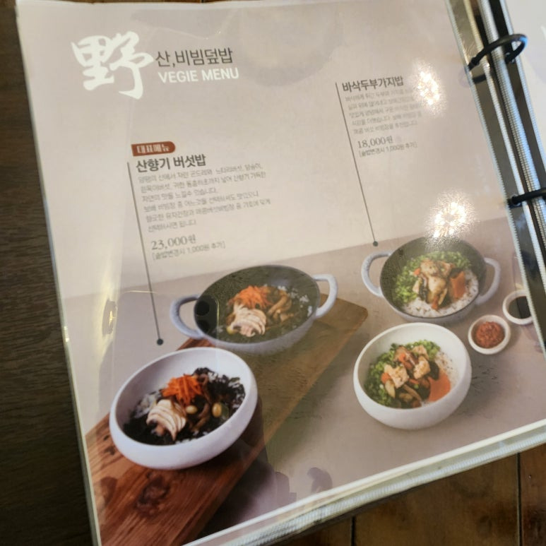- 저는 대표메뉴라 적힌 산향기 버섯밥(23,000원)으로 주문했어요.