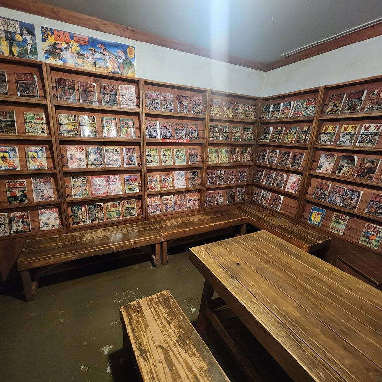 무료 개방이라 부담 없이 들어가 앉아서 만화책 한두 권 읽고 가기도 좋아요. 비 오는 날, 빗소리 들으며 만화책 넘기는 맛… 인정입니다.