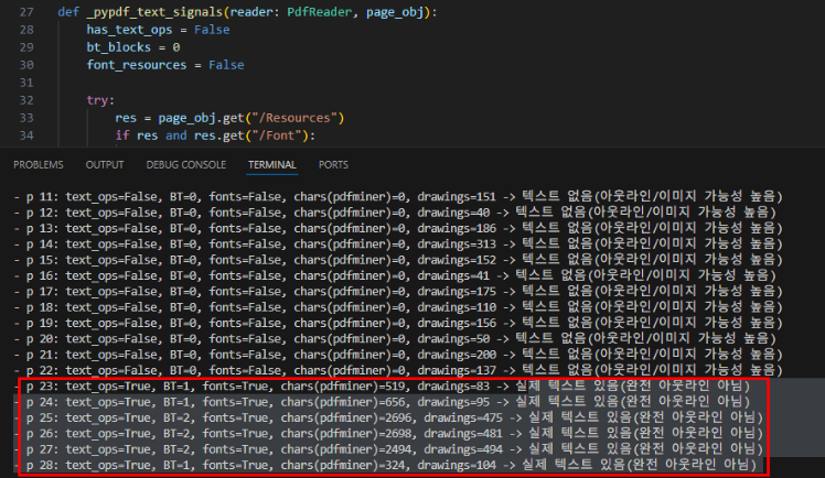 print(f"혼합: 텍스트 없는 페이지 {no_text_pages}/{total}쪽 → 일부 페이지만 아웃라인/이미지")