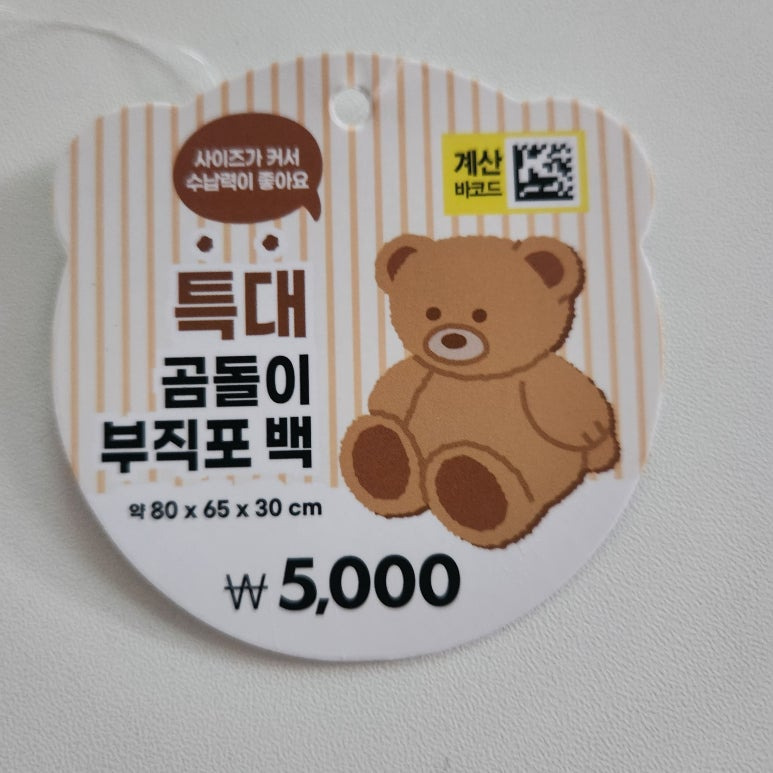 가까운 다이소에 들러 '특대 곰돌이 부직포 백'을 찾아보세요.
