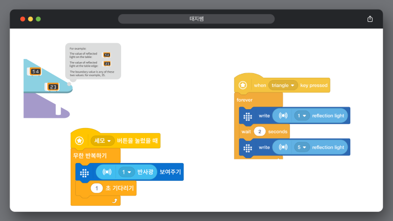 - 전역 변수: 함수 밖에서 센서값 변수를 선언하면, 이벤트 함수에서 global로 가져다 쓸 수 있어요.