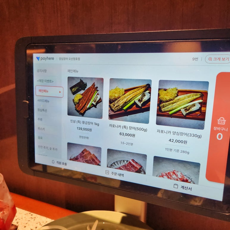 가격도 합리적인 편인데, 자포니카 (특) 장어 500g이 63,000원.