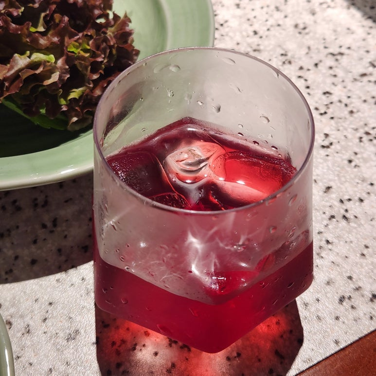 여기에 웰컴드링크로 직접 담근 복분자 음료를 내어주는데,