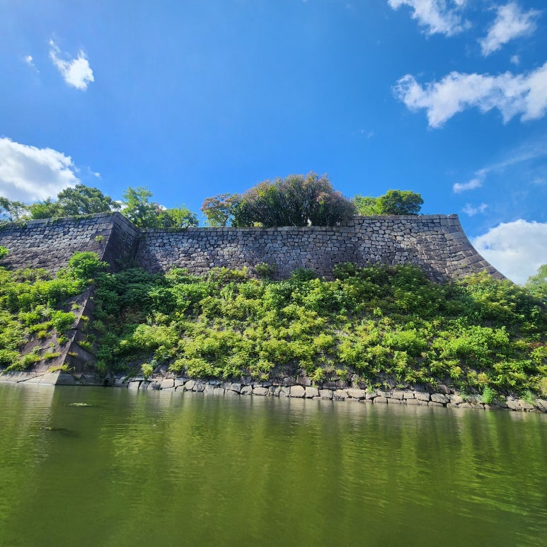 잔잔한 물 위에서 바라보는 오사카성의 풍경이 정말 멋졌어요.