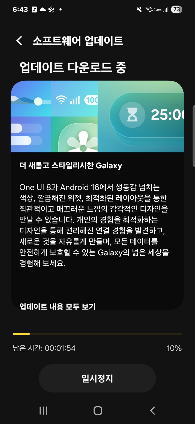 안드로이드 16으로의 업데이트가 가능하다는 메시지였다.