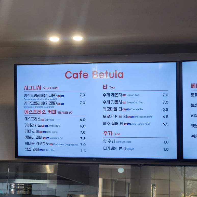 커피는 아메리카노 6천원, 디카페인 변경에 1천원이 추가된다.